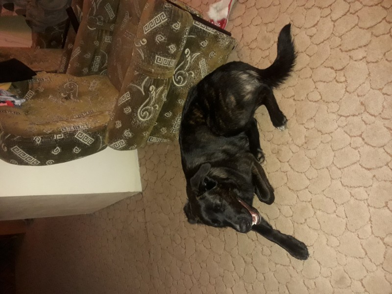 Melna suņu meitene ar baltu pakakli atsaucās uz vārdu Džuse. Paliela augumā jo ir rotveilera un vidusāzijas aitu suņa krustojums. Ļoti mīlīga, čipota bet bez kakla siksnas.