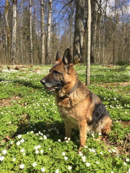 Vārdā Šerija, Vācu aitu suns, brūns ar melnu