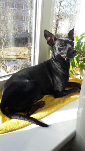 Melns,īsspalvains suns. Atsaucās vārdā Džims-Džimijs
