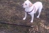 labradora sajaukums ar stafordu, neliela auguma, izskatās kā jauna kucīte,18 kilogrami, vēdera rajonā rēta pēc steralizācijas.atsaucasuz vārdu Sara.