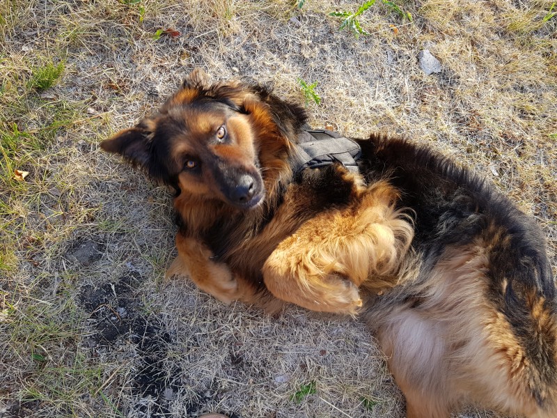 VAS šķirnei līdzīgs, melns ar rudu krāsā, apmērām 30-36 kg, gaiši brūnas acis, atsaucas uz vārdu Beilijs, bailīgs