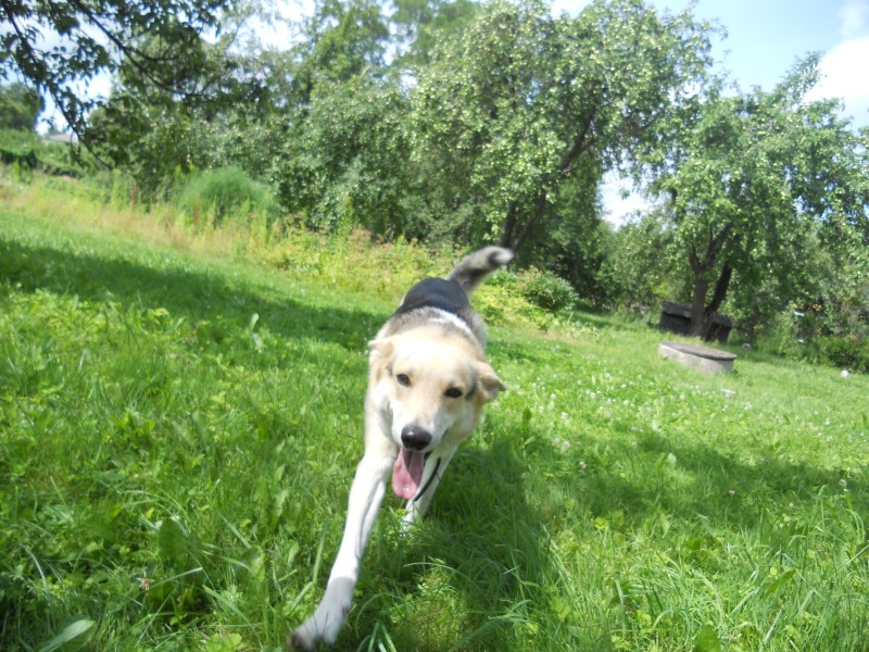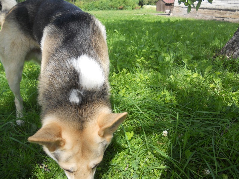 Vidēja auguma puika, ķepas un purniņš gaišā krāsā, mugura melna un uz skausta balts plankums. Atsaucas uz vārdu Zvaigznīte.