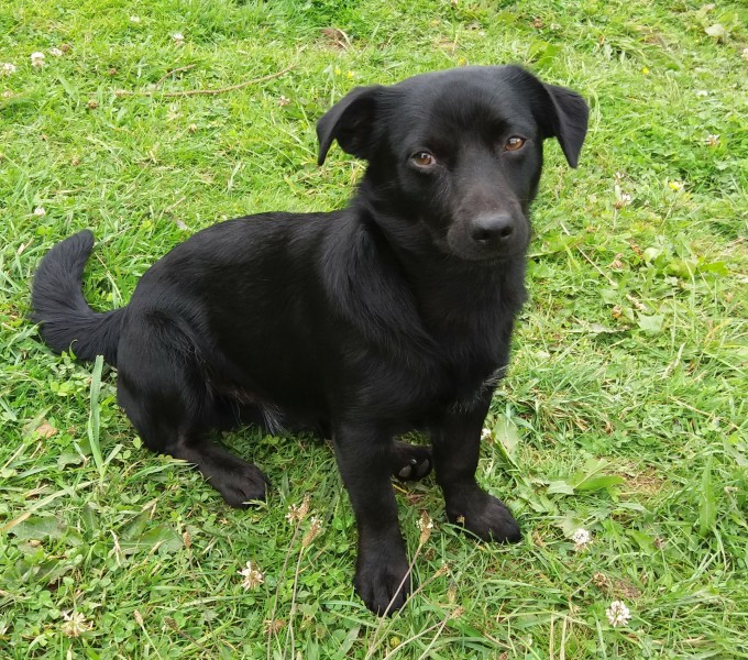 1 gadu vecs,Melns, maza auguma, uz krūtīm neliels balts plankumiņš.Draudzīgs.Ap kaklu brūna siksniņa.Atsaucas uz vārdu Rūcis.