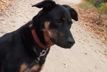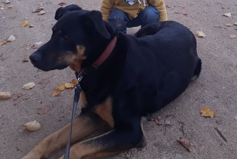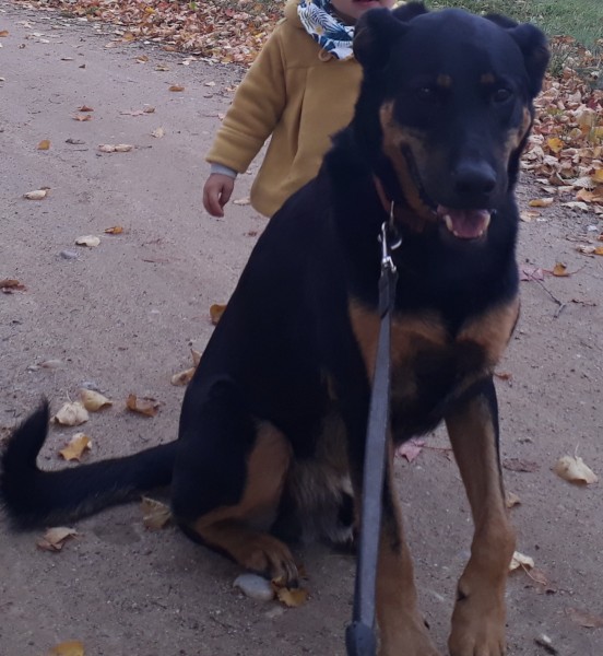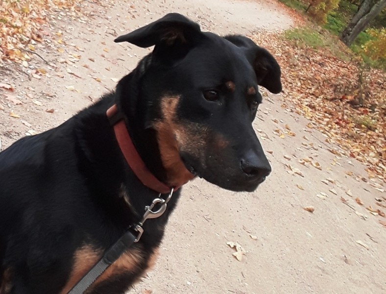 Rodžers! Mācīts, mīļš un gudrs suns melnā krāsā ar brūnu vēderu un kājām.