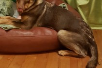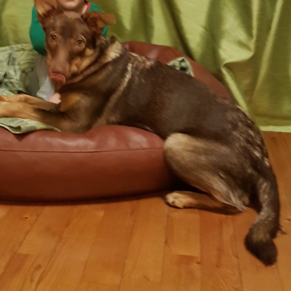 Ļoti draudzīga kucīte, ruda ar lāsumiem.Vidēja auguma, īsspalvaina. Atsaucas uz vārdu Suze.