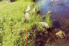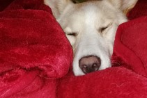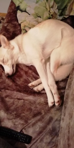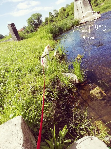 Balta ar rižu laikas tipa kucīte aizskrēja pastaigas laikā bija uzvilkti melni iemauktini.