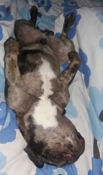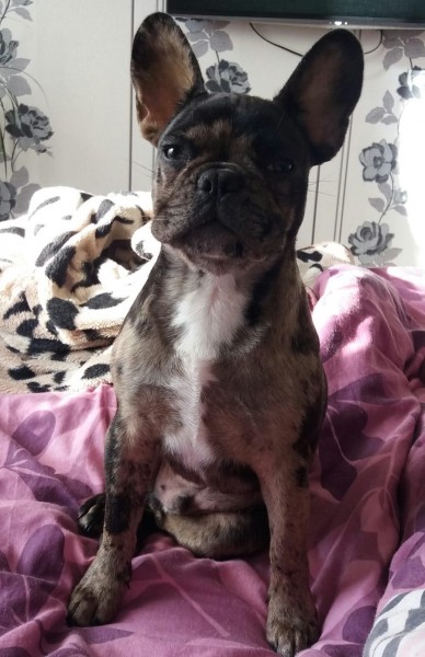 Marmora krāsas ar baltu krūtiņu, kaķa skrāpēta rēta uz kreisās augšlūpas. Māk dot ķepu un prasīt gardumus.