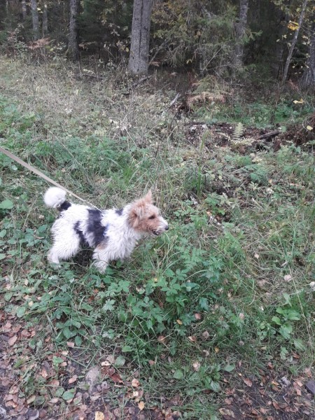 Pazudis Trīskrāsu (Brūns, balts - lielākā apmatojuma daļa, melns) asspalvainais foksterjers. Maza auguma. Ar garu sprogainu apmatojumu. Draudzīgs - nāk pie cilvēkiem, nav nikns.