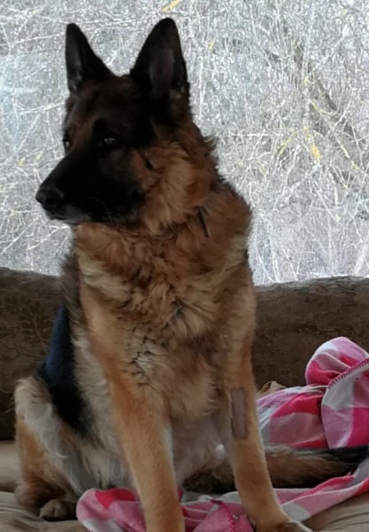 Vācu aitu suns , atsaucas uz vārda Čaks.