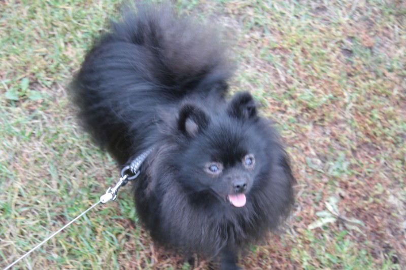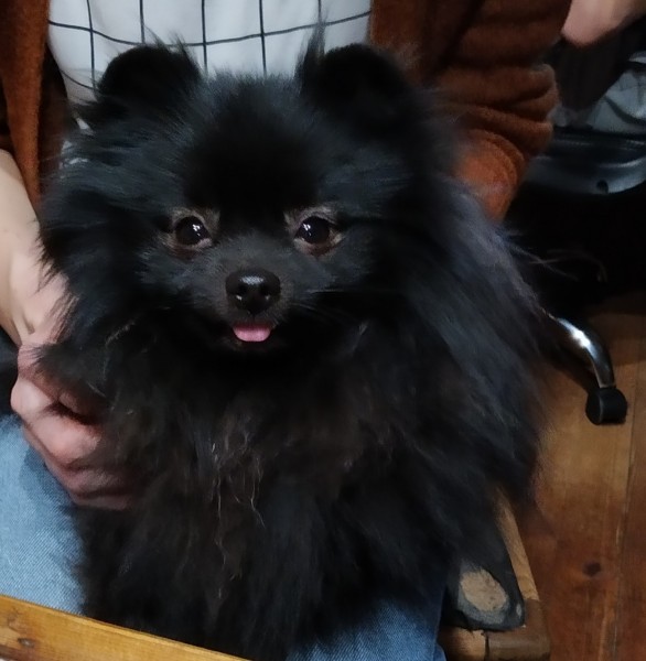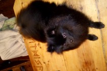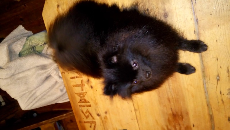 Kad paliek viens sāk kaukt. Maziņš, melns, ar garu spalvu.
