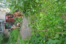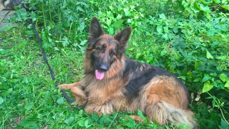 Pazūda 2 vācu aitu suņi: garspalvainais melns ar bruno un pelecīgs