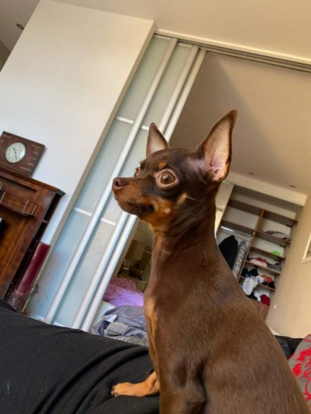 Tumši brūnas krāsas kucīte. Toiterjers. Atsaucas uz vārdu LAPIŅA vai LAPAZAURĪTE. Pazuda 19.03.2020 ap 22:00 (izmuka no 1.stāva balkona Tomsona ielā 39 k1).
