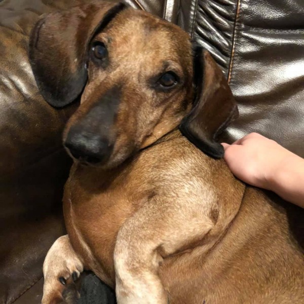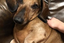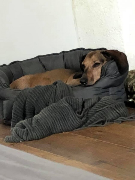 Atsaucas uz vārdu FUKSIS, ir čipots, ap kaklu gaiši dzeltena pret ērču siksniņa. Krāsa- Brūns ar sirmu (12.g.v)