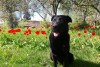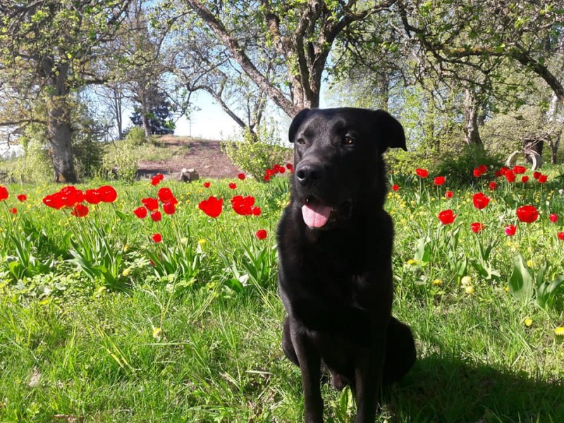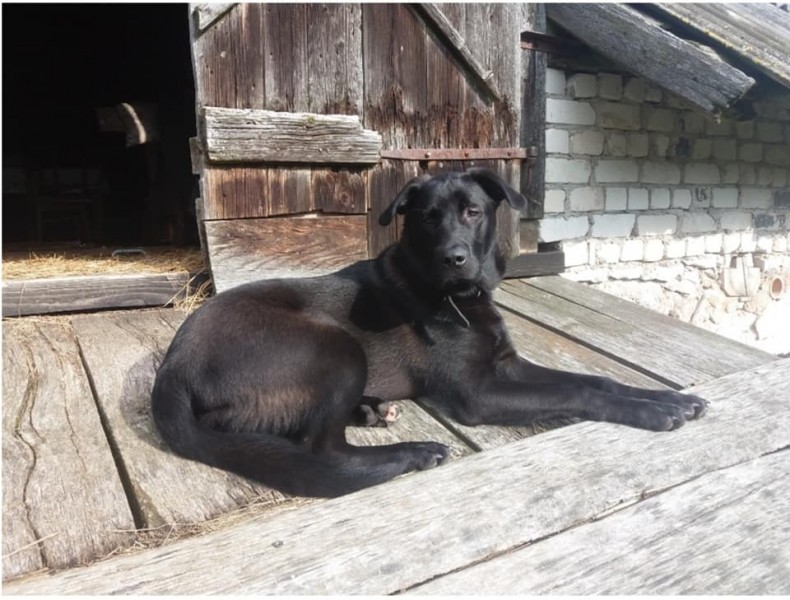 Liela auguma suns, melnā krāsā. Cane Corso un vilka šķirnes krustojums.