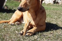 Gaiši brūns, takšveidīgs, čips pleca apvidū - kreisā pusē.