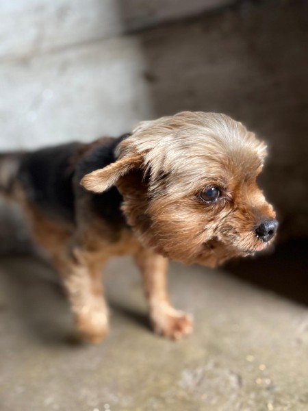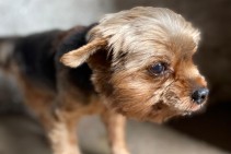 Jorks,melnu muguru,brūns vederiņš un ķepiņas.12 gadus vecs,izkrituši zobiņi tapēc mēlīte izkārusies.Slikta dzirde.Atsaucas uz vardu Pipars.