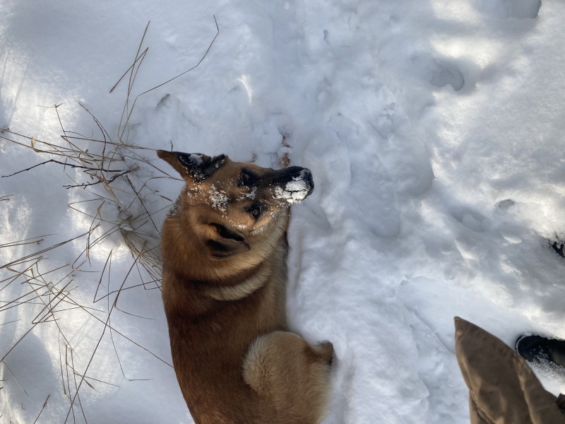 Gaiši brūns, parasti viena auss gaisā, otra nokarājusies. Astes gals balts. Ap kaklu brūna siksniņa ar sudraba piekariņu. Uz piekariņa vienā pusē vārds PĒRKONS, otrā pusē māju nosaukums MAZORIŅI. Pēc dabas ziņkārīgs, uzvedība - normāla.