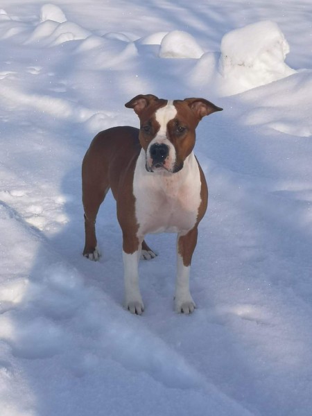 31. 03.Gulbenes NOV.. Daukstu pag. ap 19.40 pazuda amstafs, aizbēga pakaļ lapsai. Stari, lejastradu meži, tuvāk dzelsceļam. Ja gaidīju jums ir kāda informācija, ziņojiet
