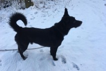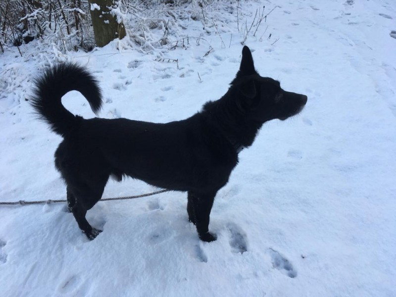 Valmierā pie Cēsu apļa, bet iespējams jau ticis tālāk uz Kocēnu vai Kauguru pusi. Melns vidēja auguma laikas jauktenis, krūtis baltas, aste gredzenā, viena auss nošļukusi. Ap krūtīm viņam melna siksniņa.