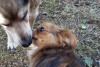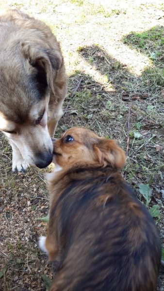 Jauktas krāsas suņu meitenīte, izmēros mazāka par kaķi.