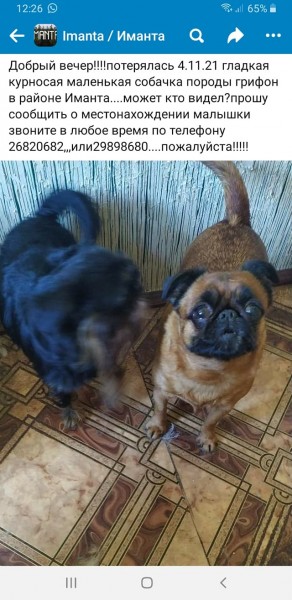 Pazudis suns ,brabantas griffons ,rudā krāsā ,maza auguma .Bailīga ,rokās nedodās .