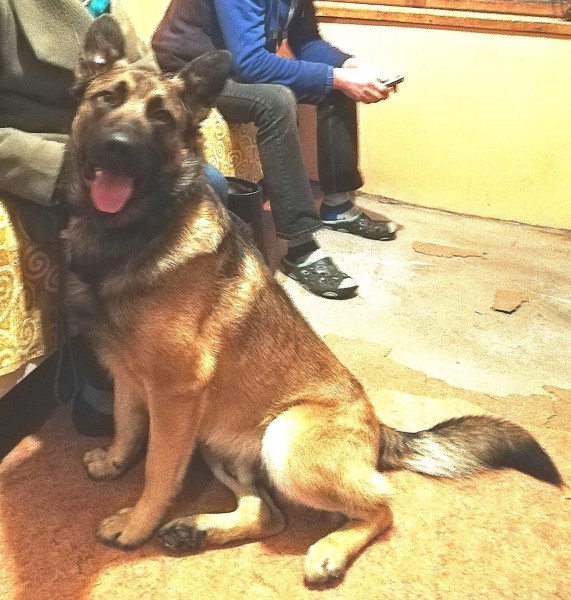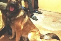 ļoti draudzīgs. Ap kaklu ķēdes siksniņa pie kuras īss ādas pavadiņas gabals Šķirne Beļģu aitu suns. Ruds, līdzīgs vācu aitu sunim, bet ar izteikti melnu purnu. 1.4 mēnešu vecs