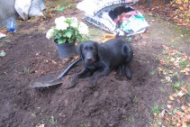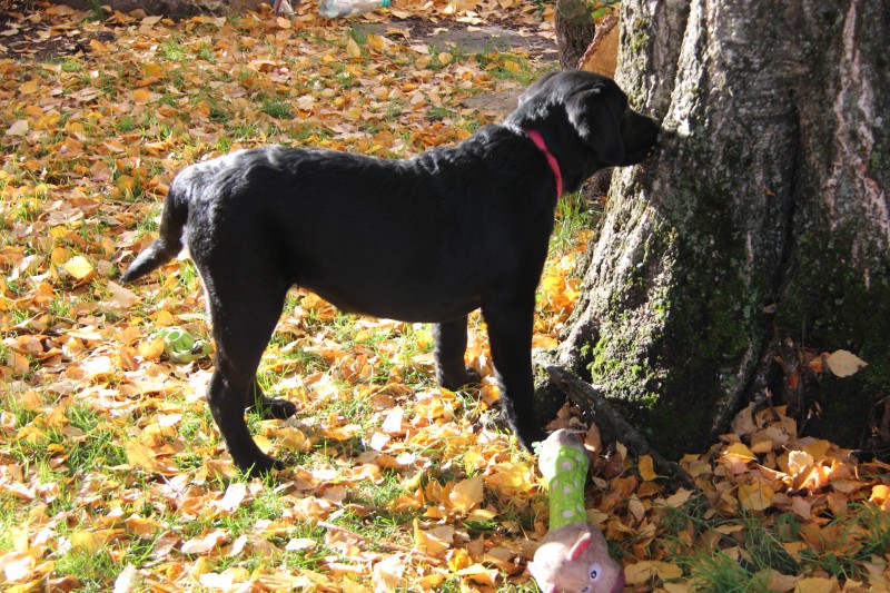 Melna labradora kucīte,nāk klāt pie visiem cilvēkiem