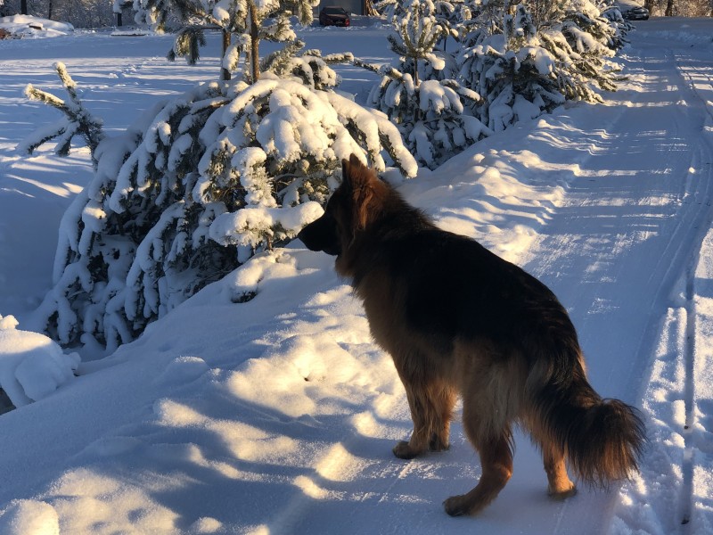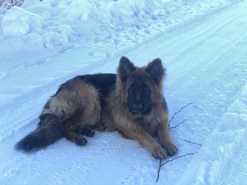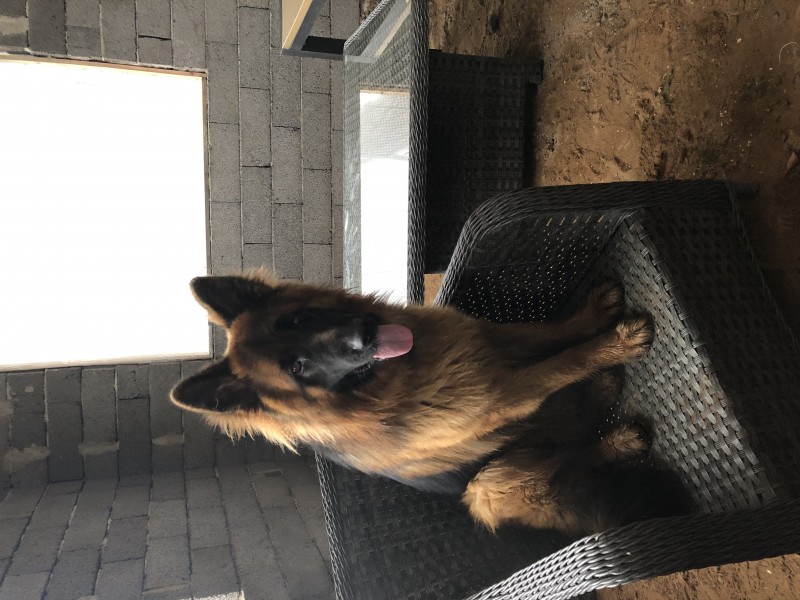 atsaucas uz vārdu Griffins, liela auguma,melns ar rudu nokrāsu garspalvains vācu aitu suns