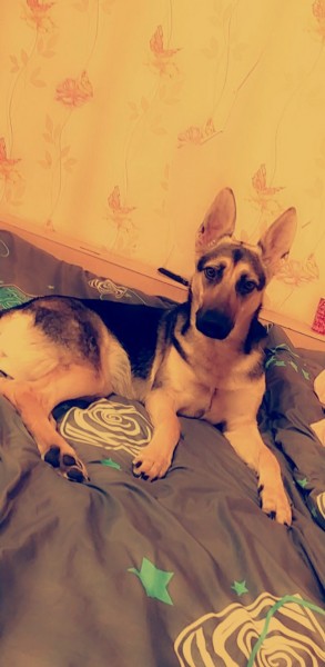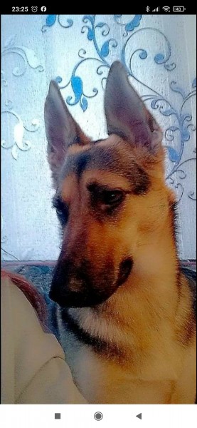 Vilcene jauna ar melnu muguru rižu apakšu gluda spalva lielām spicam ausīm zem purna vairākas dzimumzīmes melnā krāsā ļoti mīļa sauc Stella.