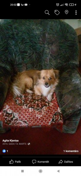 Brūna krāsā ar garu spalvu maza auguma sunuks draudzīgs priekšējie zobi ir šķībi .