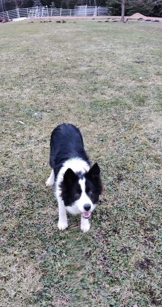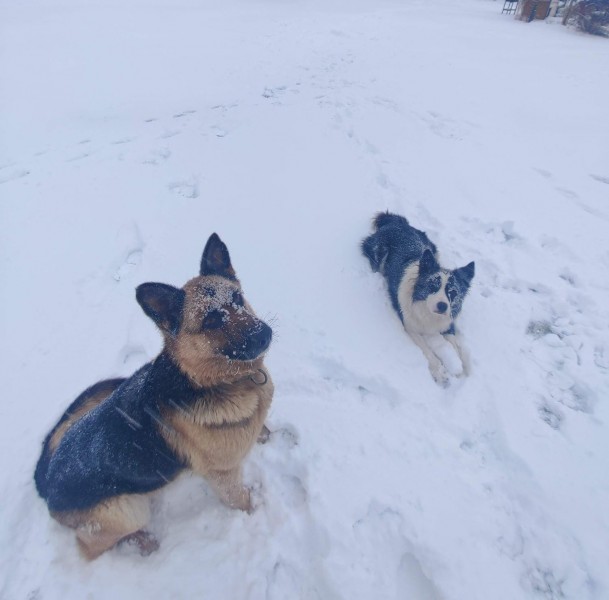 Borderkollijs, Vārds -Šefs. Pārvietojas kopā ar Vācu aitu sugas suņu dāmu. Abiem suņiem ir kakla siksnas. Suņi čipoti un reģistrēti.