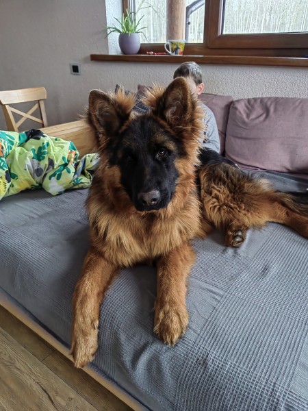 Garspalvains Vācu aitu suns, ap kaklu radio sētas siksna (melnā krāsā), 7.5mēmešus vecs, atsaucās uz vārdu Sems, ir draudzīgs! ATRADĒJAM 500EUR ATLĪDZĪBA GARANTĒTA!!!