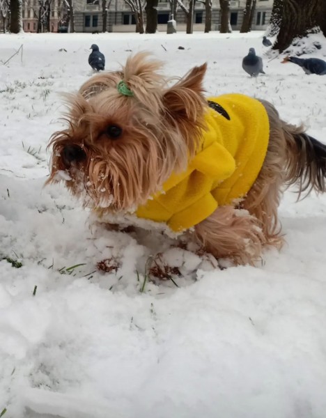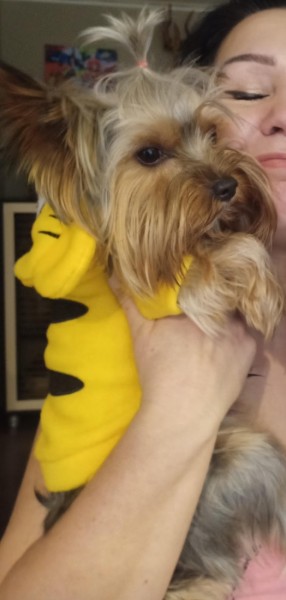 Suns pazudis parkā Esplanādē 05.03 plkst 12.15. Yorkshire terrier, bija dzeltena jaka (skaties foto). Viņam ir kājas slimība, staigā ļoti lēni. Skriet nevar. Ir doma, ka kāds viņu paņēma. Atlīdzība garantēta. Lūdzu, palīdziet atgriezt viņu mājas.