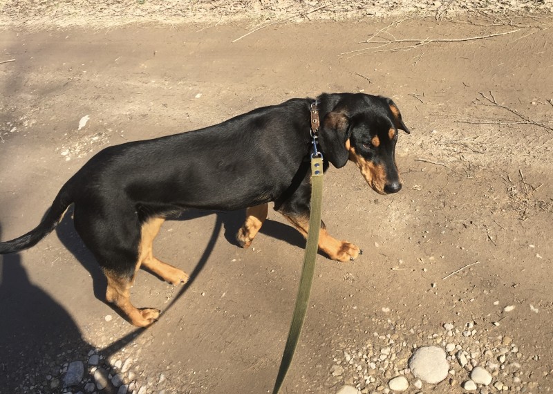 Latvijas dzinējs. Melns ar brūniem lāsumiem. Uz kreisās auss malas gaiši brūns plankums. Atsaucas uz vārdu \\\'Berijs\\\'.