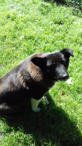 Melnā ar baltām priekš ķepām un baltu priekšu