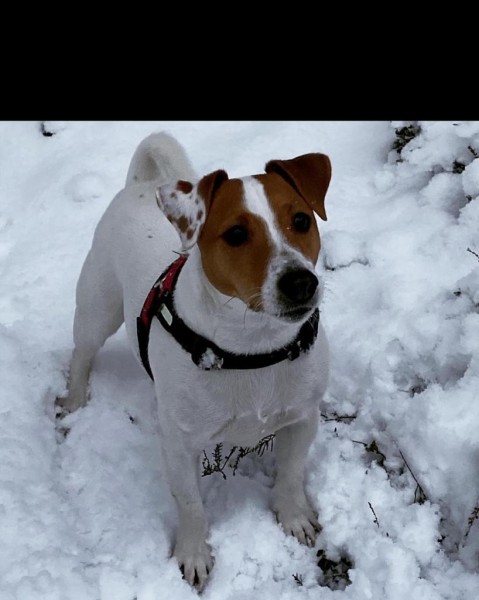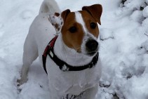 Neliela auguma, balts Džeka Rasela terjers. Īpaša pazīme - viena auss punktaina. Nav agresīvs. Atsaucas uz vārdu MAKSIS.