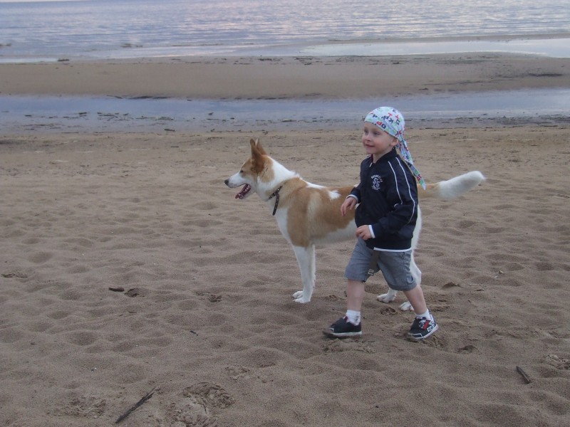 Aizklīdis suns no lauku mājām,Limbažu rajonā, Lādezerā. Draudzīgs, atsaucas uz vārda Bairo. Balts ar brūniem plankumiem.