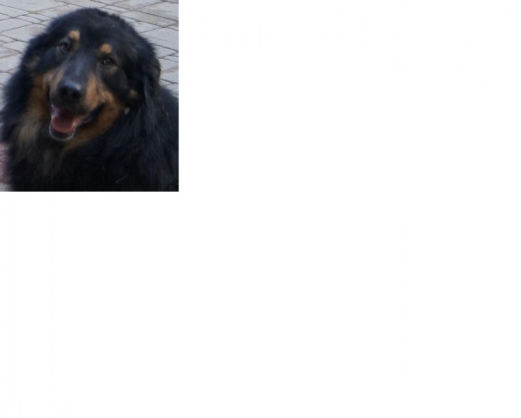 Paliels suns, garspalvains, melns ar gaišām ķepām. Līdzīgs Ganu bernes, bet varētu būt krustots ar vilku .. . Norāvās no metāliskas ķēdes, ~ 4 m metāliskā ķede velkās tagad līdz
