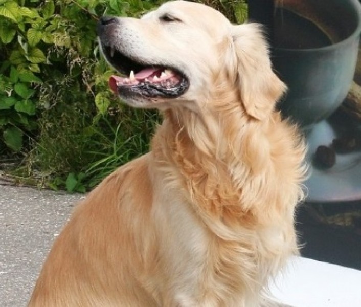 Pazudis suns. Zelta retrīvers, puika, 10 gadi. Ap kaklu sarkana siksna.