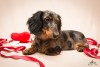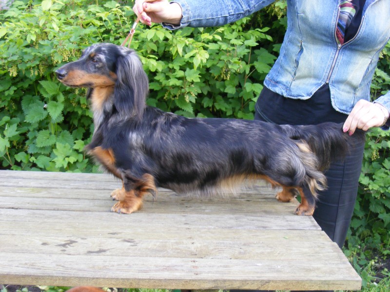 Garspalvainais taksis, puika, melns ar marmoru, rudie lāsumiņi uz purniņa un ķepiņām, 8 mēnēši jauns. Ja Jūs kaut ko redzējāt, vai dzirdējat - būsim pateicīgi par informāciju. Bildē stājā ir viņa māte.