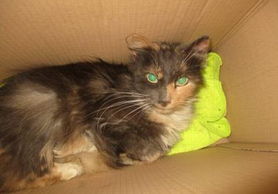 Trīskrāsu kaķenei Lūnai šodien laimīgā diena!