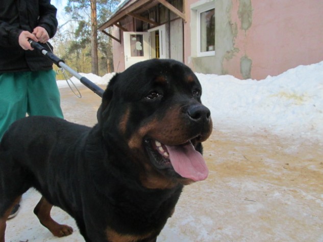 Drusku paviesojies paversmē - mājās devās milzu rotiņa puika, kurš svēra 60 kg. Saimnieks, kura svars = ar mīluļa svaru, lepni stāstīja, ka suns katru dienu apēd 10 kg gaļas un putru. Reizi nedēļā ome viņu (suni) lutina ar 5 kg jēra ribiņu ;) .