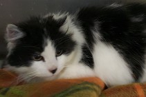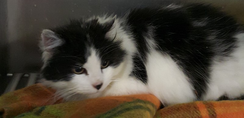 melnbaltā, garspalvainā skaistule patversmē nonākusi no Tērvetes ielas 97, Jelgavā