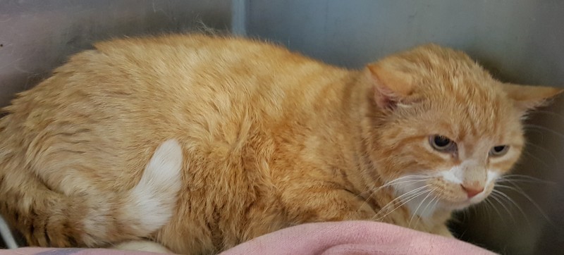 Pieaudzis, rudi balts kastrēts runcis patversmē nonācis no Katoļu ielas 19, Jelgavā