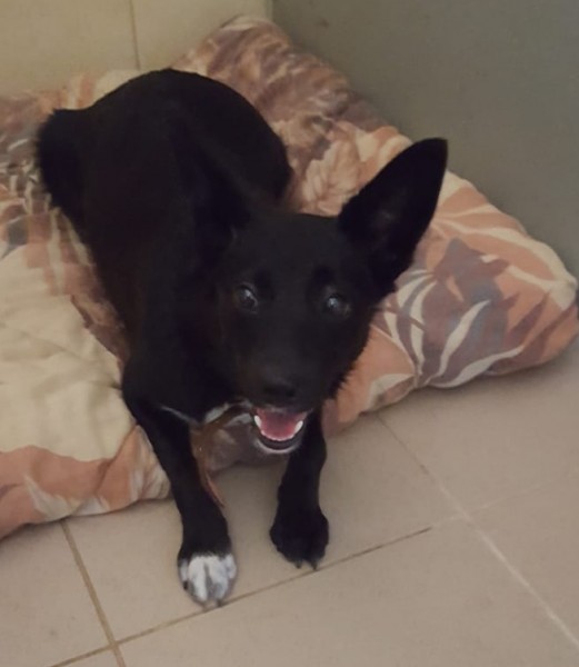 Maza auguma, melna ar baltām pazīmēm (krūteža, labā priekšķepa zeķītē) un modri stāvošām ausīm, sniegbaltiem zobeļiem, bez čipa - kucīte 27.07.18 pieklīdusi Viskaļu ielā, Jelgavā